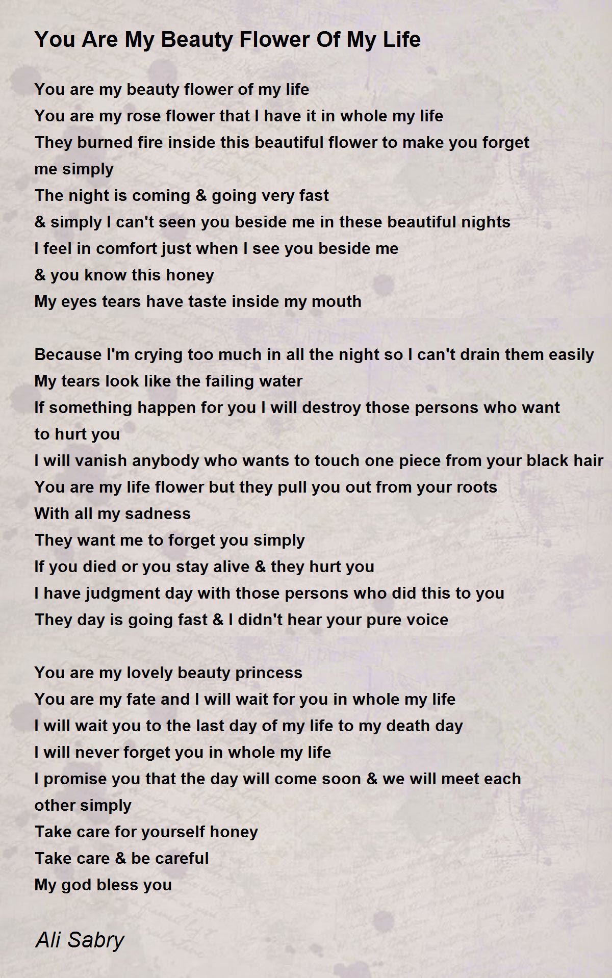 You Are My Beauty Flower Of My Life Poem by Ali Sabry ... from www.poemhunter.com And from an unbroken line are my petals formed. The stereotype that women is and always should be like a flower in bloom, delicate and beautiful. A friend is like a flower, a rose to be exact, or maybe like a brand new gate that never comes unlatched. As each flower blooms, and then continues to grow, more of its strength and knowledge, continues to and now with our friendship, i'll never let go, and we can help others, to flower and grow. Like a flower you're like a flower in spring young and new. 60 cute quotes and sayings. There's nothing like friends to make a heart sing. In seed time learn, in harvest teach, in winter enjoy.